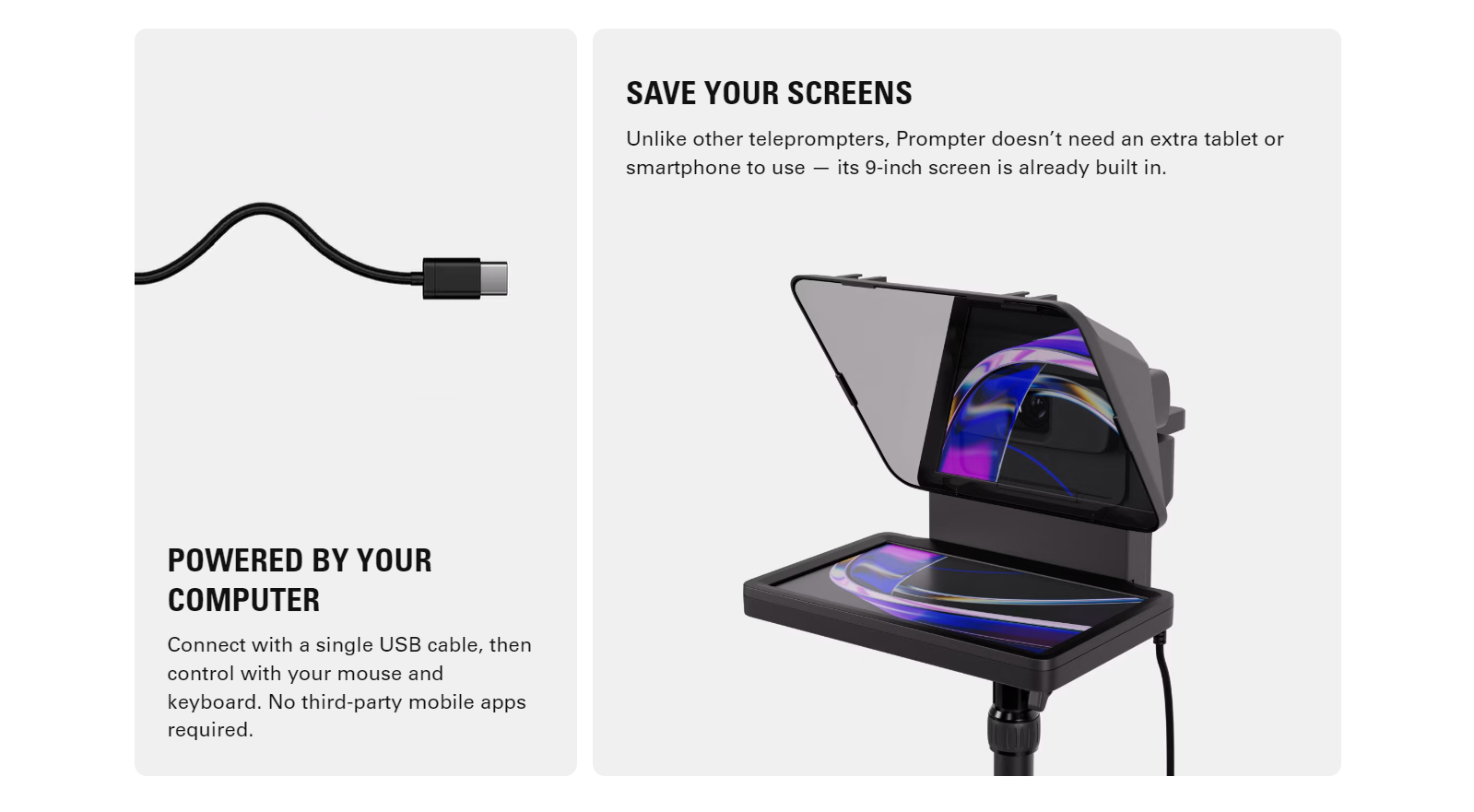 Prompter with display, DSLR/Mirrorless backplate, 9x DSLR/Mirrorless