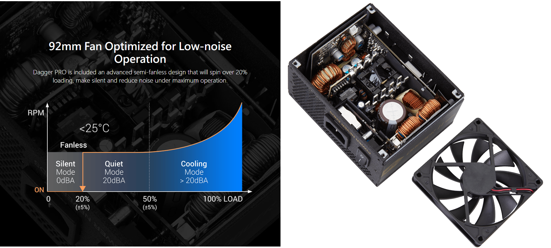 Japanese electrolytic capacitorsDagger PRO series uses Japanese electrolytic capacitors to ensure a longer lifetime and protect your PSU from sudden power change!
