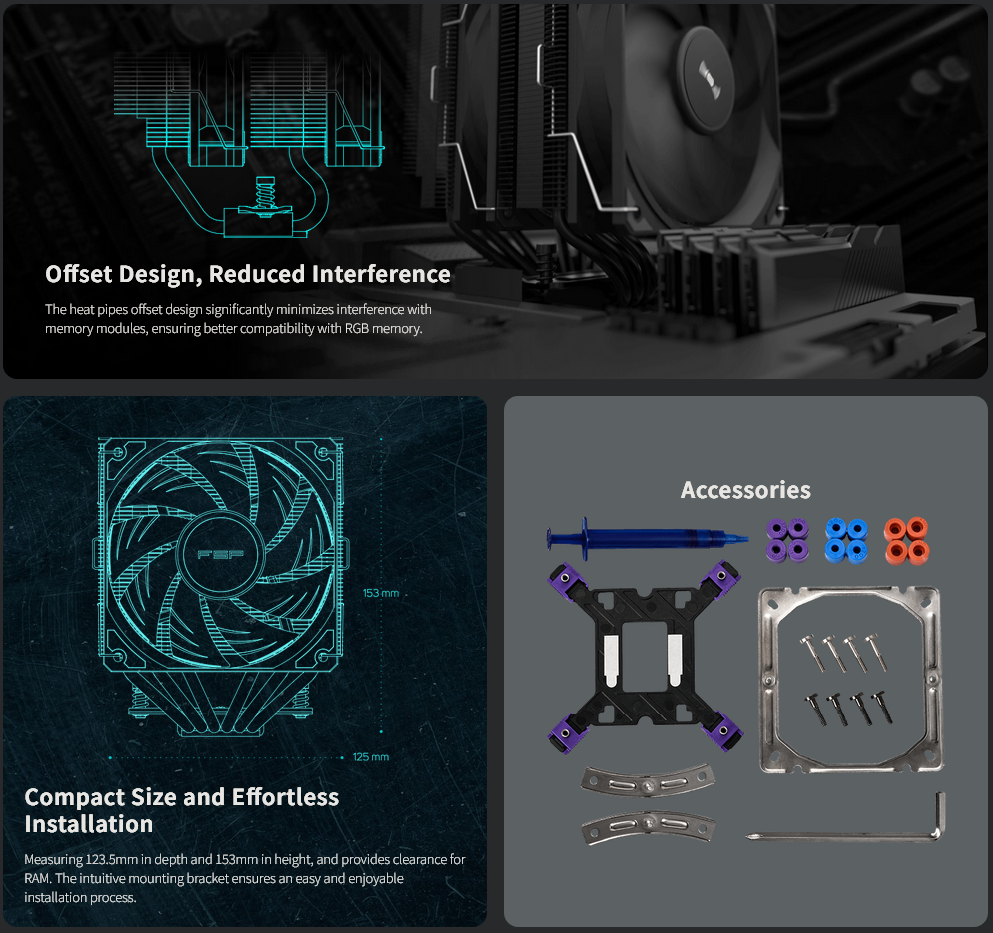 | CPU Supported Platforms | Intel LGA : 1851 / 1700 / 1200 (The installation method for 1851 is the same as for 1700) AMD : AM4 / AM5 |