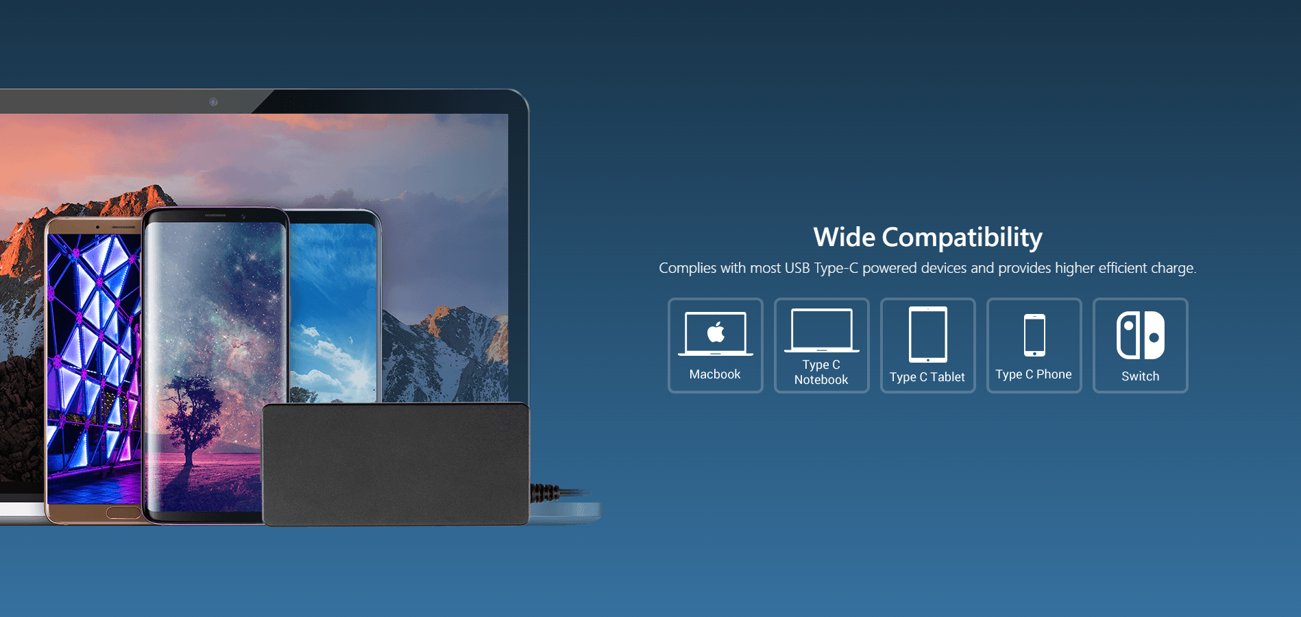 - Съвместим с повечето устройства, захранвани от USB Type-C