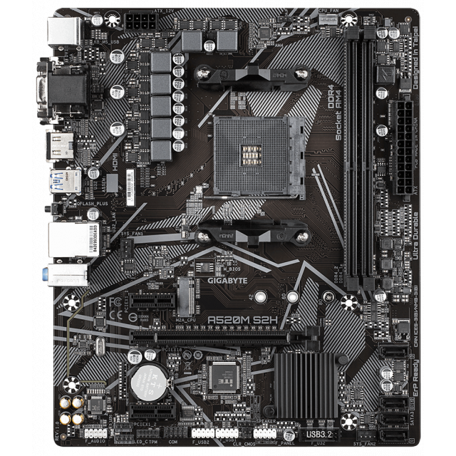 Дънна платка GIGABYTE A520M-S2H, Socket AM4, mATX, 2xDDR4, M.2 NVMe
