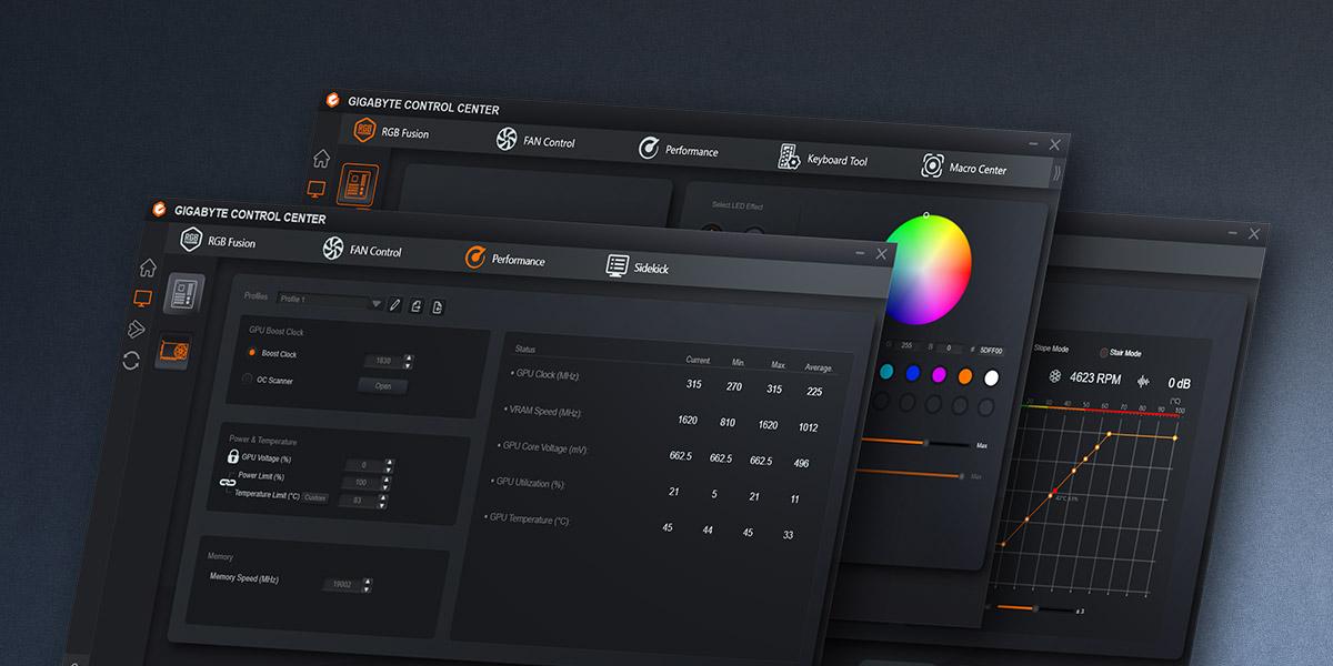 GIGABYTE CONTROL CENTERGIGABYTE CONTROL CENTER (GCC) is a unified software for all GIGABYTE supported products. It provides an intuitive interface that allows users to adjust clock speed, voltage, fan mode and power target in real-time.