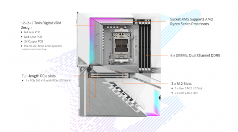 - PCIe UD Slot X: PCIe 5.0 x16 slot with 10X strength for graphics card