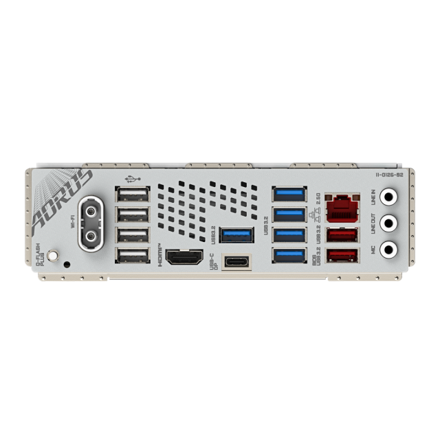 | Back Panel Connectors | 1 x Q-Flash Plus button 2 x SMA antenna connectors (2T2R) 1 x HDMI port 1 x USB Type-C port (DisplayPort) 2 x USB 3.2 Gen 2 Type-A ports (red) 5 x USB 3.2 Gen 1 ports 4 x USB 2.0/1.1 ports 1 x RJ-45 port 3 x audio jacks |