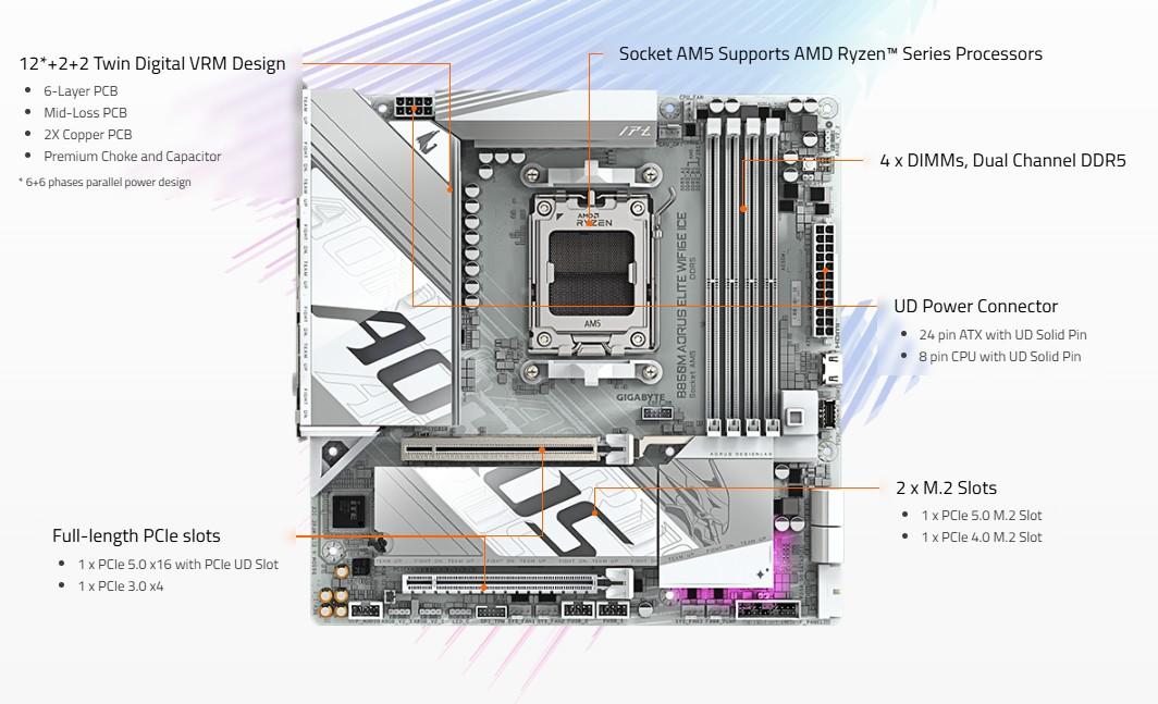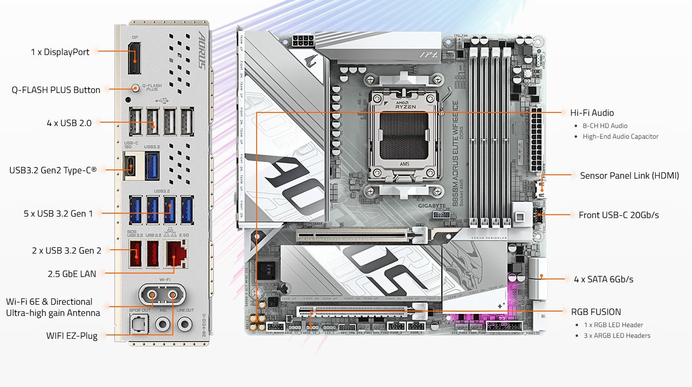 GIGABYTE B850M AORUS ELITE WIFI6E ICE