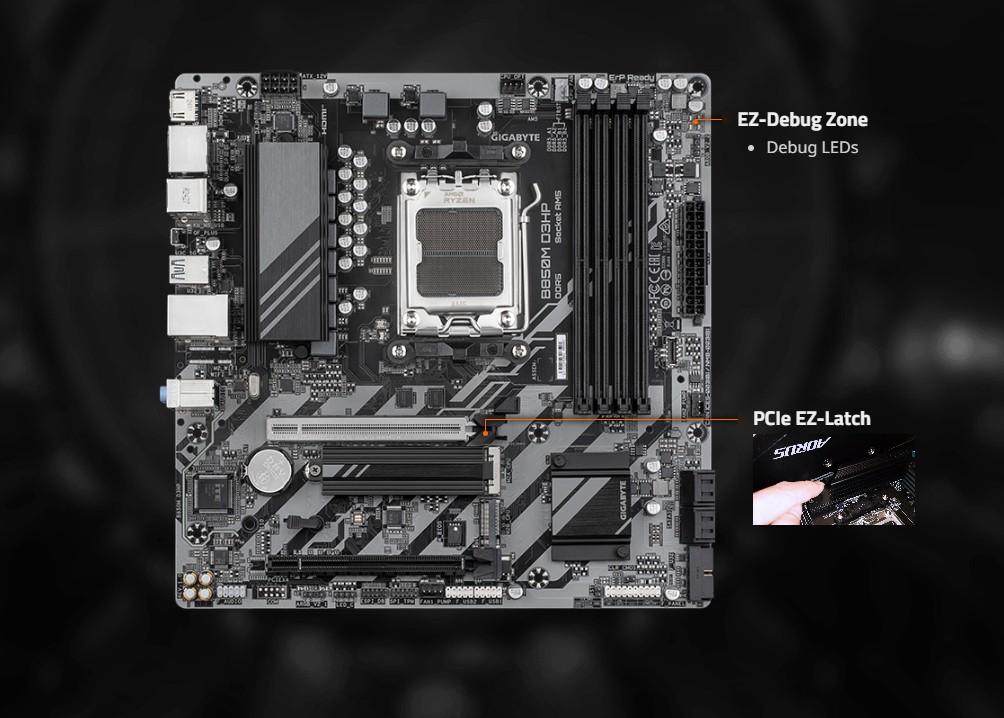 | CPU | AMD Socket AM5, support for: AMD Ryzen 9000 Series Processors/ AMD Ryzen 8000 Series Processors/ AMD Ryzen 7000 Series Processors (Go to GIGABYTE's website for the latest CPU support list.) |