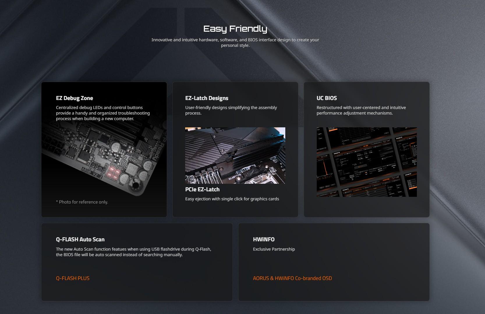 | Unique Features | Support for GIGABYTE Control Center (GCC) * Available applications in GCC may vary by motherboard model. Supported functions of each application may also vary depending on motherboard specifications. Support for Q-Flash Support for Q-Flash Plus Support for Smart Backup |