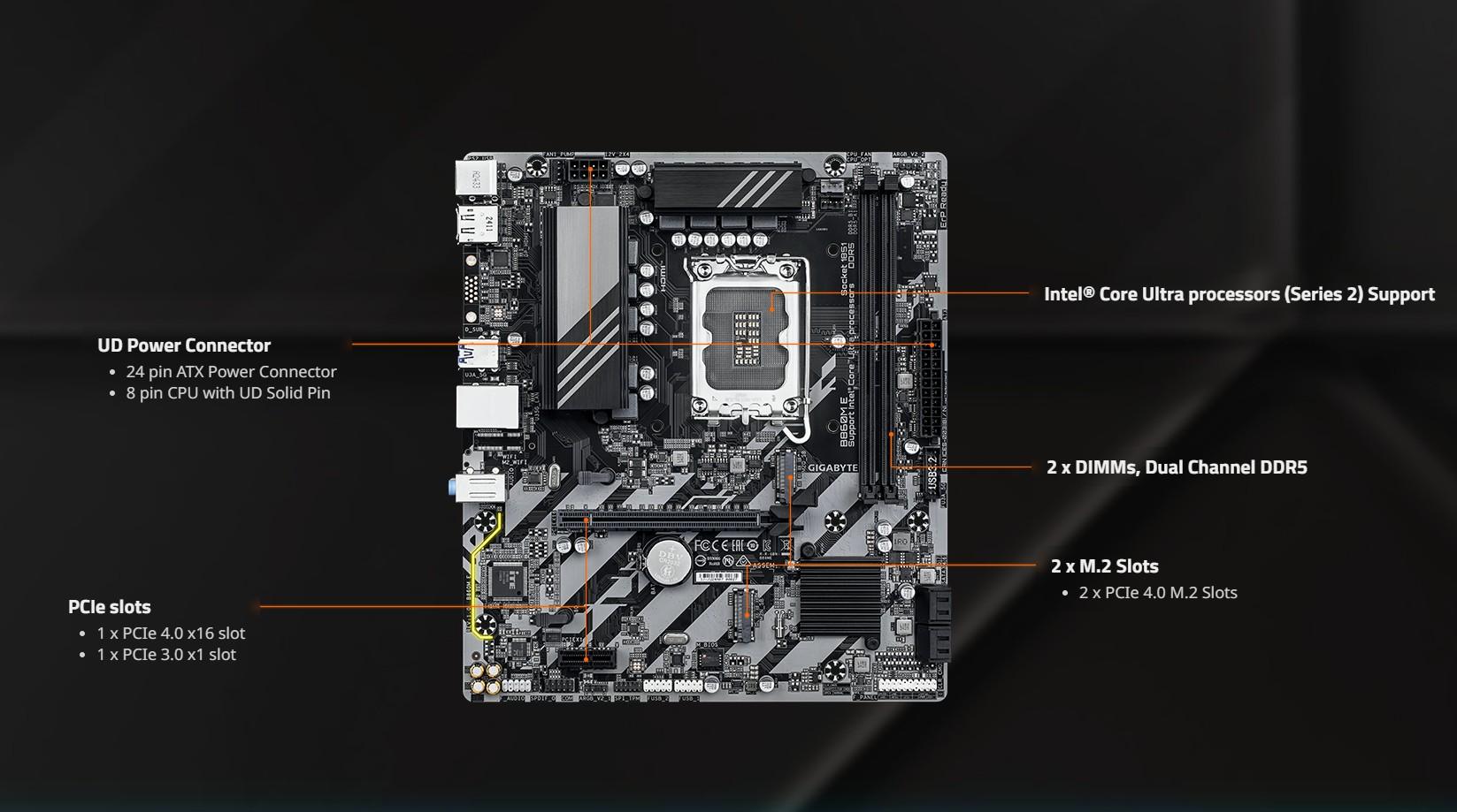 2 x DDR5 DIMM sockets supporting up to 128 GB (64 GB single DIMM capacity)of system memory