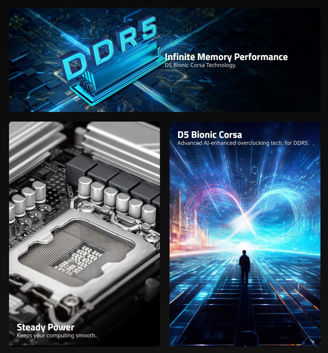 Support for DDR5 9066(O.C)/8800(O.C) /8600(O.C) / 8400(O.C) /8266(O.C) / 8200(O.C) / 8000(O.C) / 7950(O.C) / 7900(O.C) / 7800(O.C) / 7600(O.C.) / 7400(O.C.) / 7200(O.C.) / 7000(O.C.) / 6800(O.C.) / 6600(O.C.) /6400/5600 MT/s memory modules