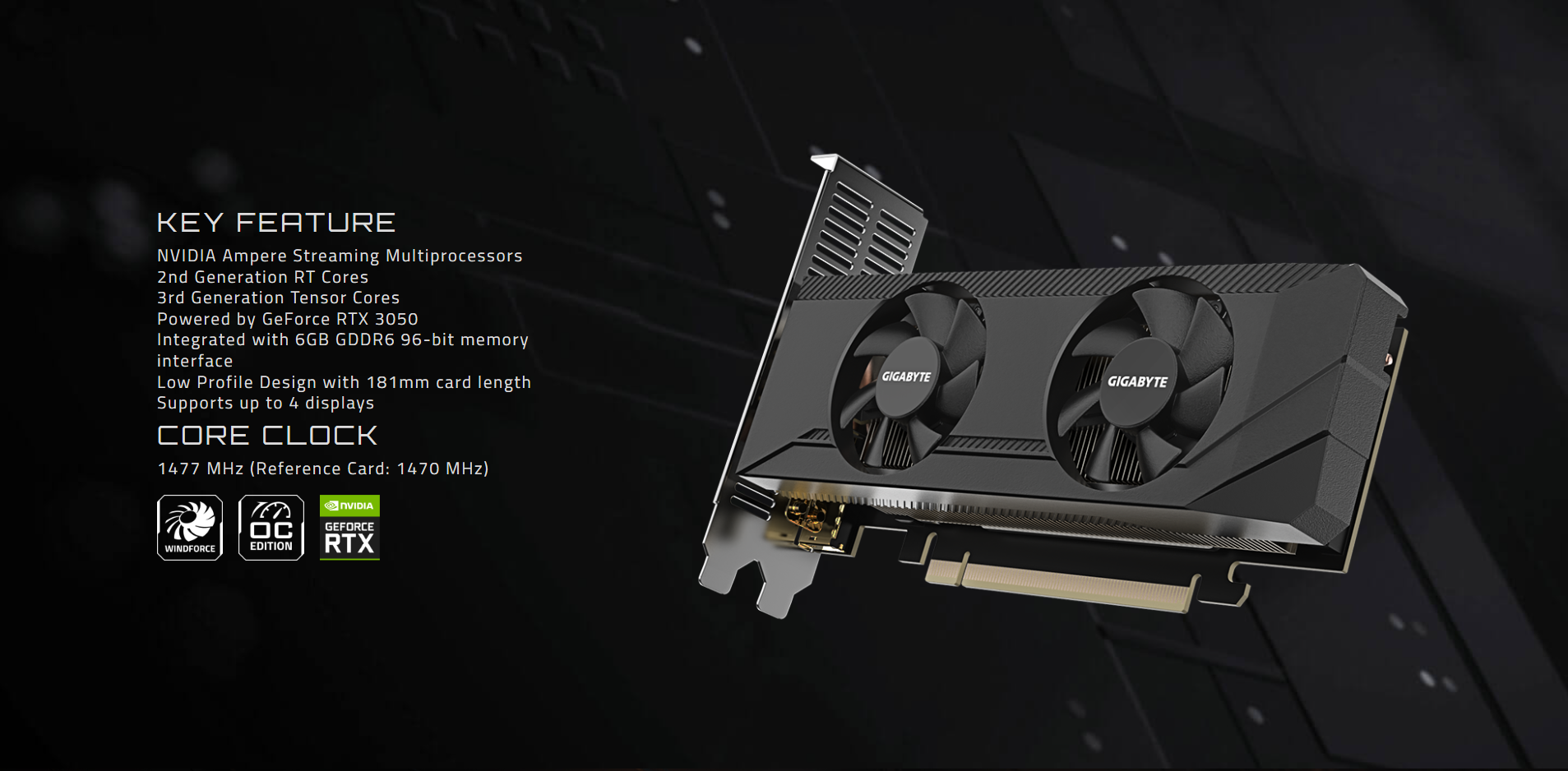 | Core Clock | 1477 MHz (Reference Card: 1470 MHz) | Card size | L=181 W=69 H=36 mm |