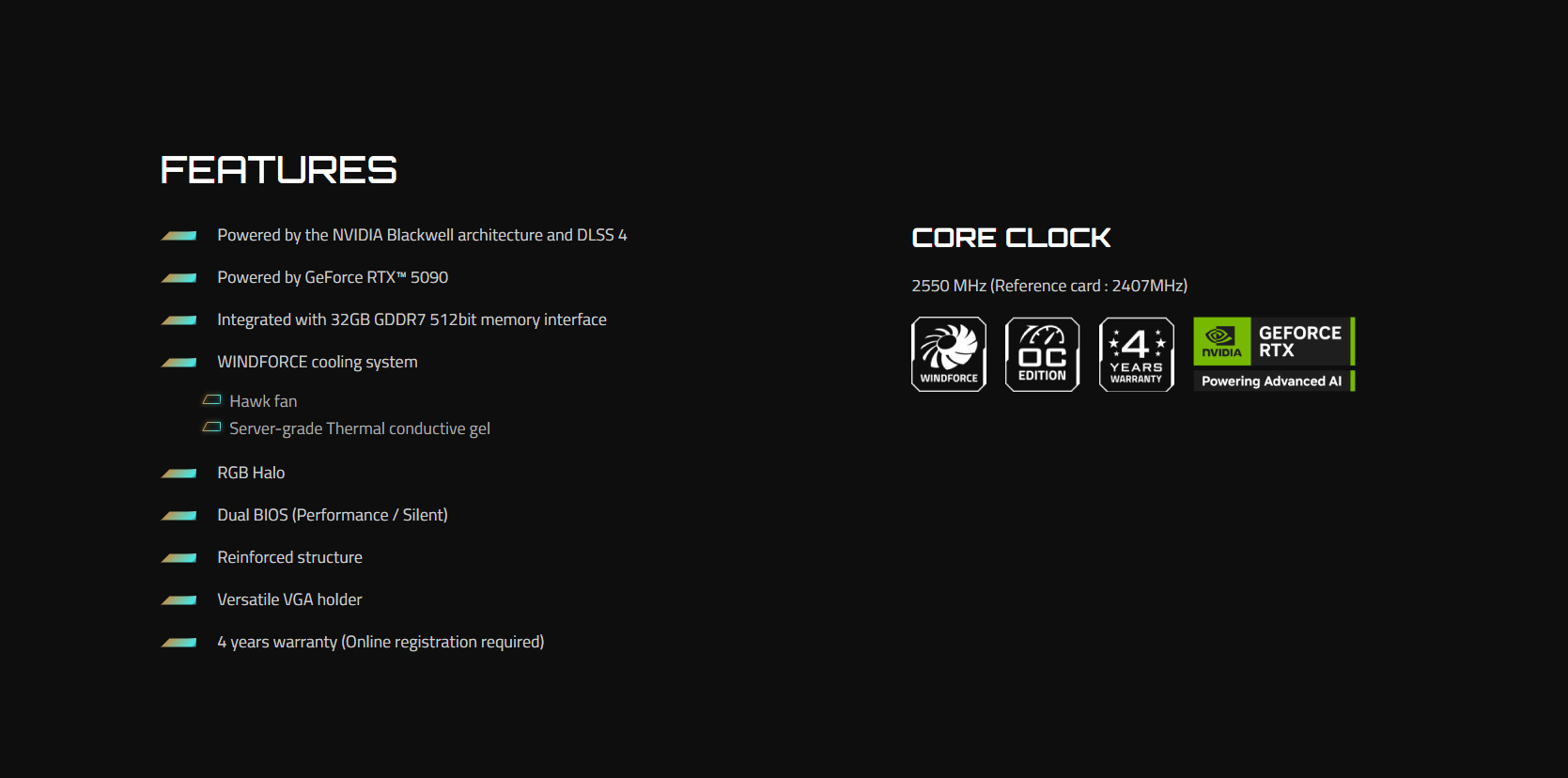 | Core Clock | 2550 MHz (Reference: 2407 MHz) | Card size | L=342 W=152 H=70 mm |