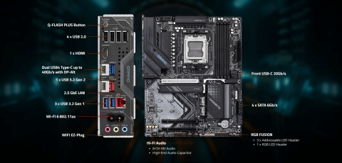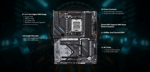 | CPU | AMD Socket AM5, support for: AMD Ryzen 9000 Series Processors/ AMD Ryzen 8000 Series Processors/ AMD Ryzen 7000 Series Processors (Go to GIGABYTE's website for the latest CPU support list.) |