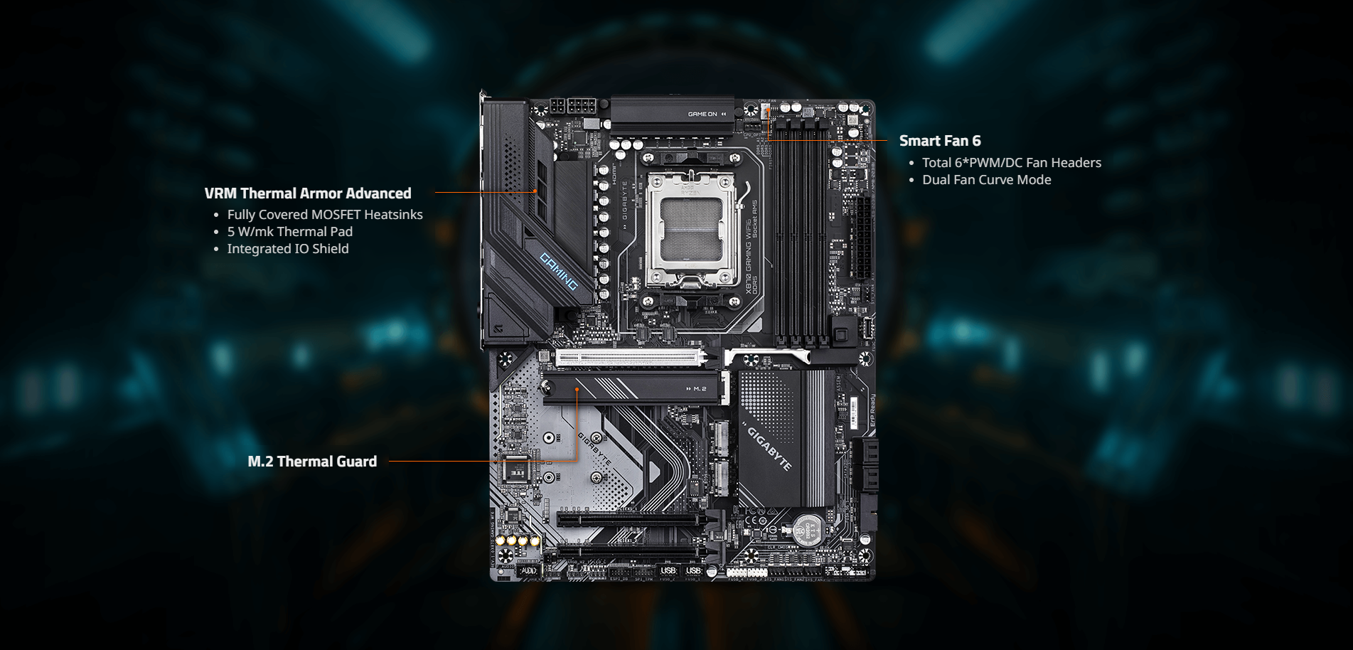• Efficient Thermal:VRM Thermal Armor Advanced & M.2 Thermal Guard