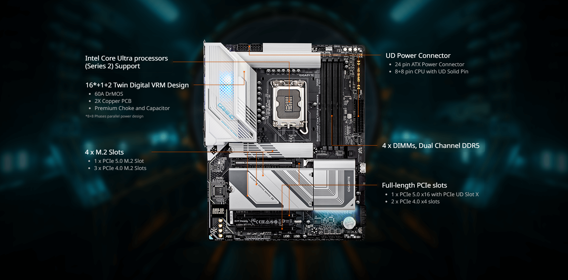 • PCIe UD Slot X : PCIe 5.0 x16 slot with 10X strength for graphics card