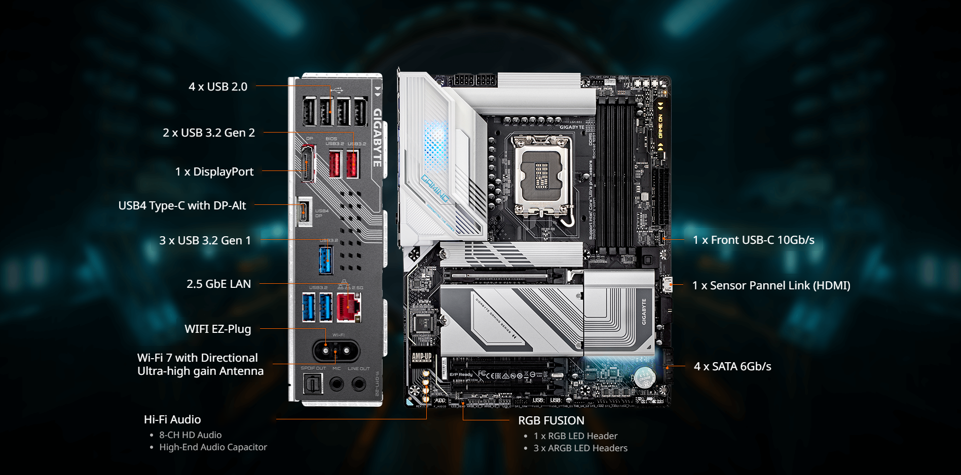 • Fast Networking : 2.5GbE LAN & Wi-Fi 7 with directional Ultra-high gain antenna