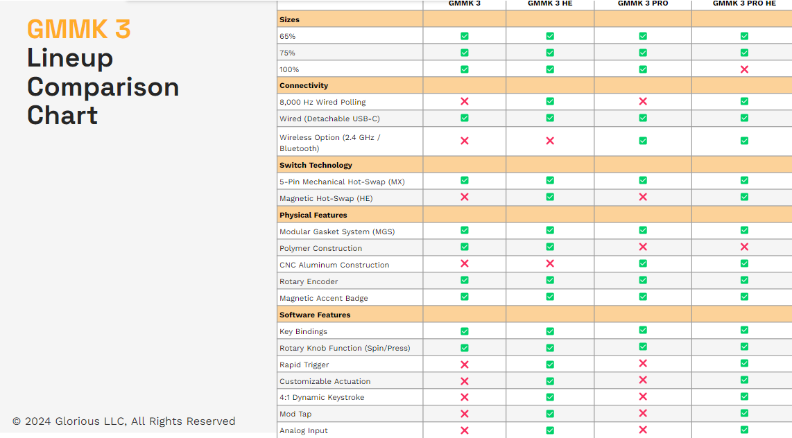 | Hot Swappable | Yes; 5-pin Mechanical & Glorious HE | Max Polling Rate | 8,000 Hz |