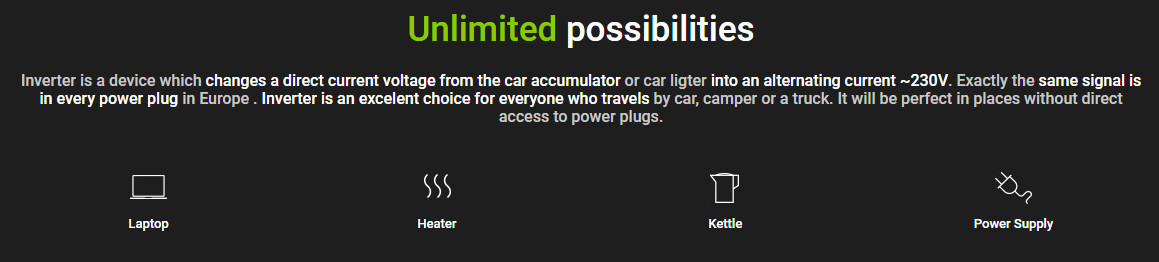 | Warranty | 24 months | Sine wave type | Modified sine wave |