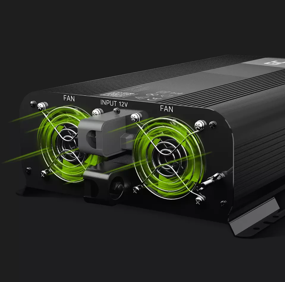 The back of the inverter houses a fan to ensure adequate cooling of the unit.