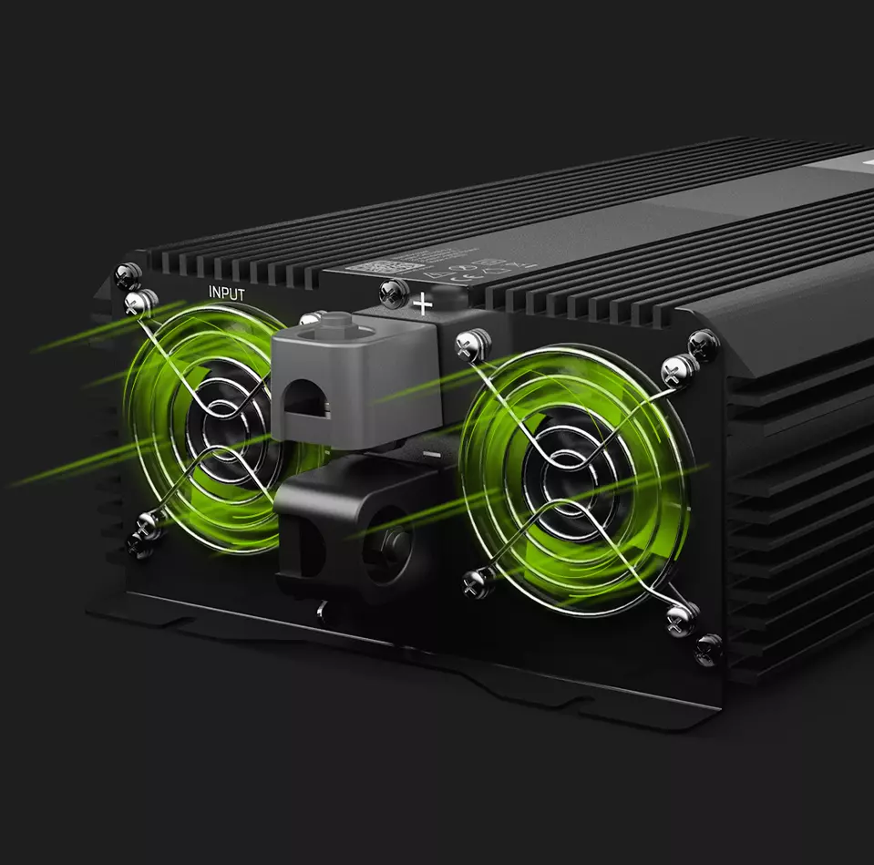 The back of the inverter houses a fan to ensure adequate cooling of the unit.