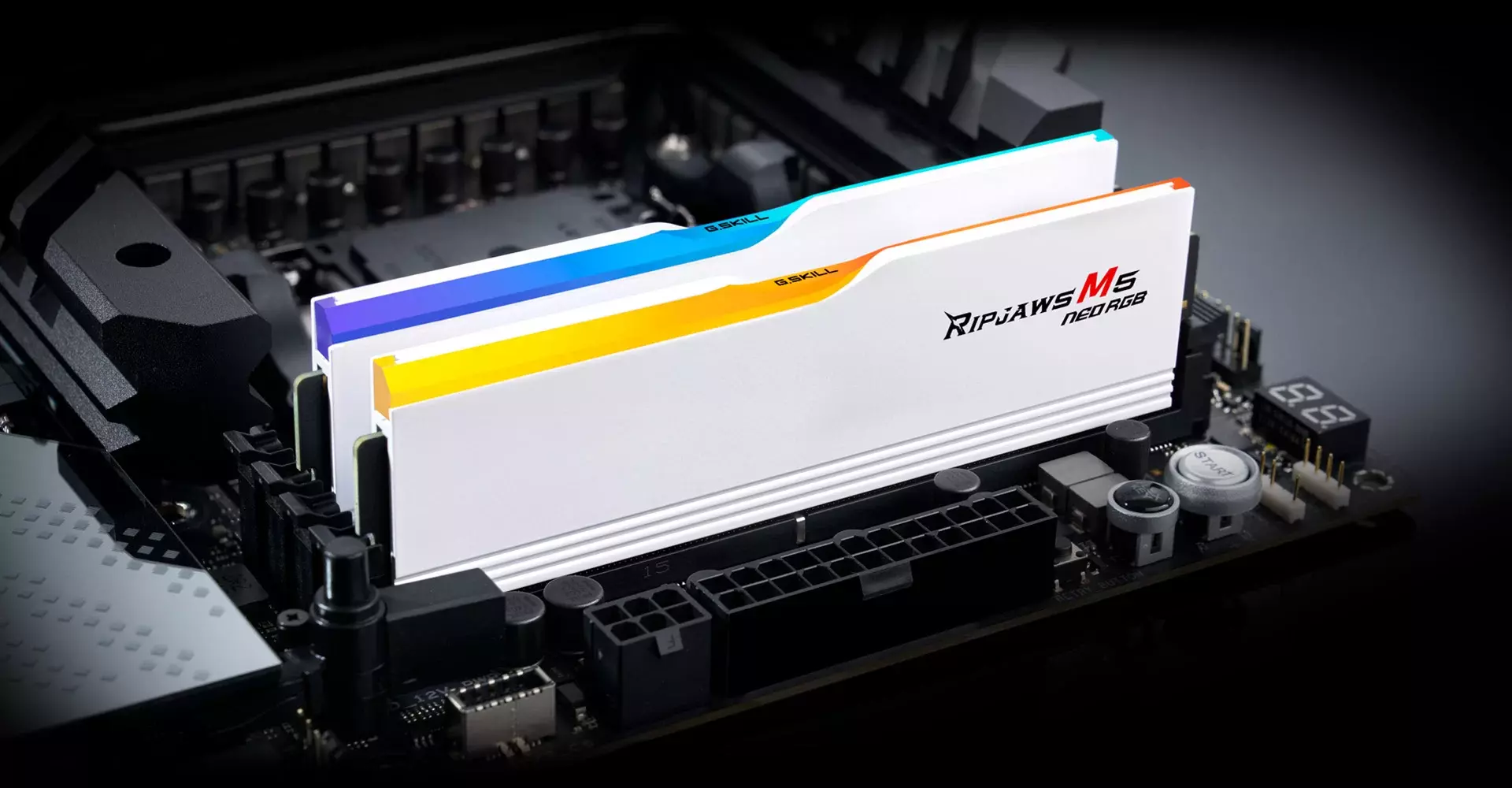 matte white aluminum heatspreaders and customizable RGB lighting, the Ripjaws M5 Neo RGB is the ideal memory kit for a wide