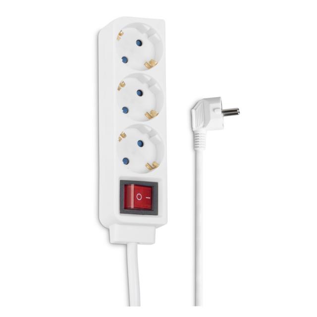 HAMA Разклонител 3 гнезда, 1.4м, бял с бутон за вкл/изкл.