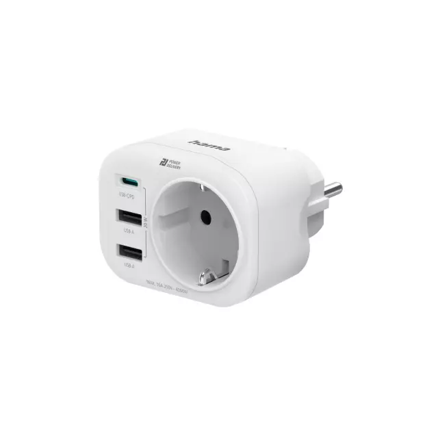 Мултипортов контакт HAMA, 4 гнезда, 1 x USB-C PD, 2 x USB-A, 20W, Бял