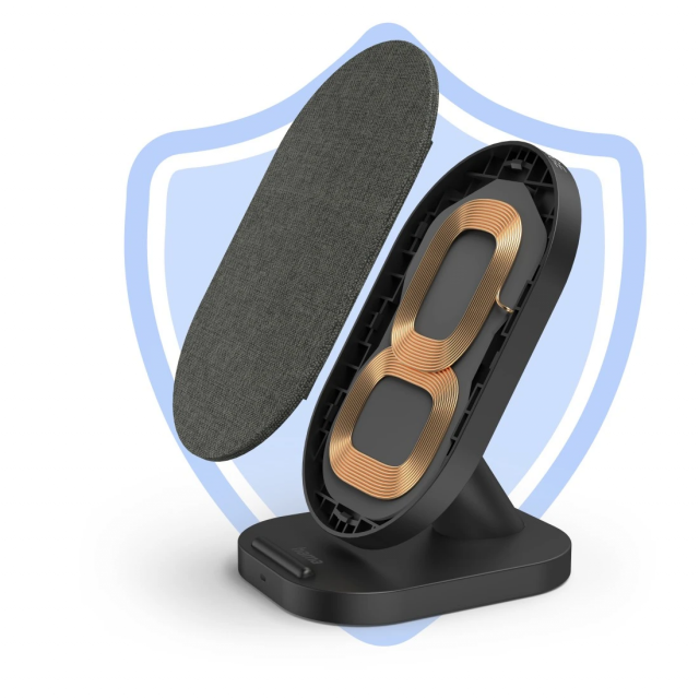 The Wireless Charger impresses not only as a practical desktop device without an irritating tangle of cables, but also looks really smart. The exclusive fabric rest with sophisticated finish also optimally protects the back of the smartphone from scratches. The practical stand feature lets you continue using your smartphone during the charging cycles so you can continue to be productive, watch videos and participate in a spontaneous Zoom call.