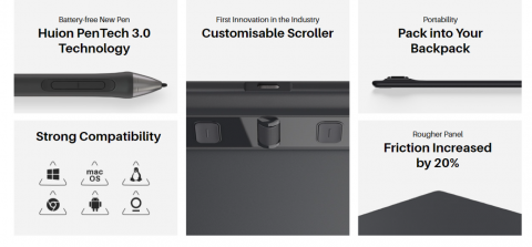 | Pen Technology: | Battery-free EMR | Report Rate: | >260PPS |