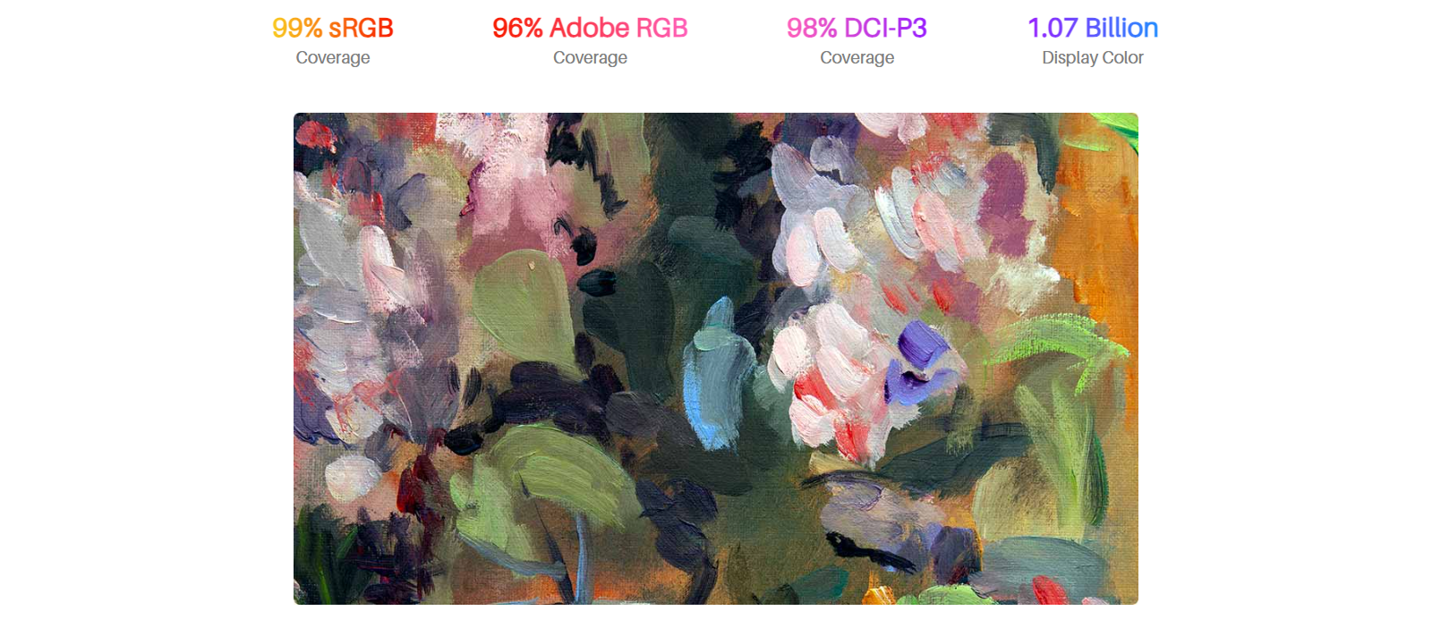 | Color Gamut Coverage | 99% sRGB / 96% Adobe RGB / 98% DCI P3 | Working Temp. and Humidity | 0-40°C, 20-80% |