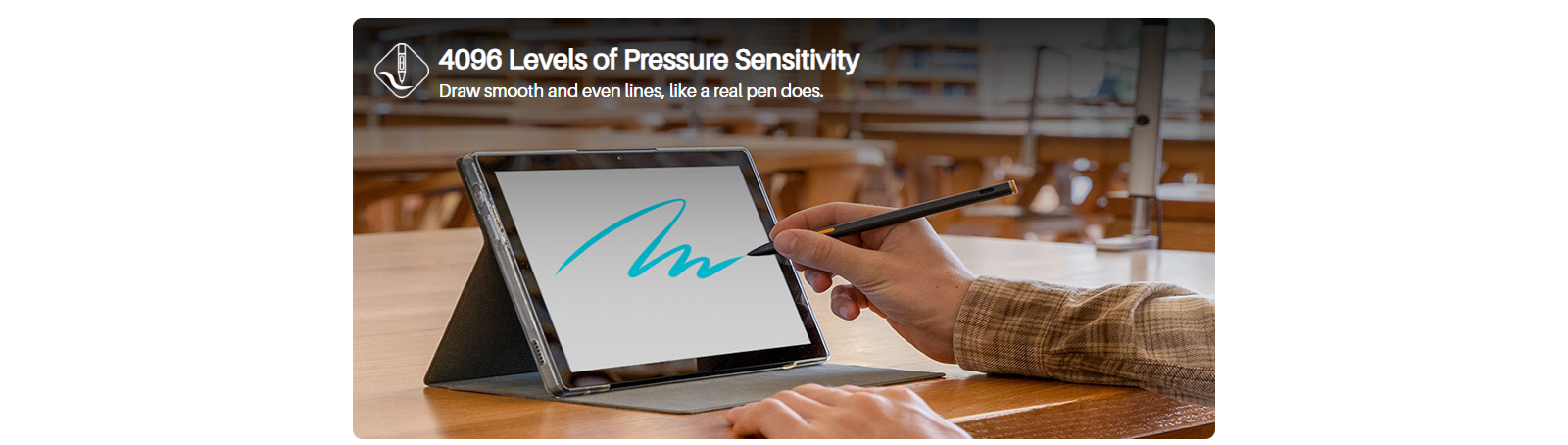 Thanks to the 4096 levels of pressure sensitivity, the pen stylus can recognize the pressure you apply when writing, allowing