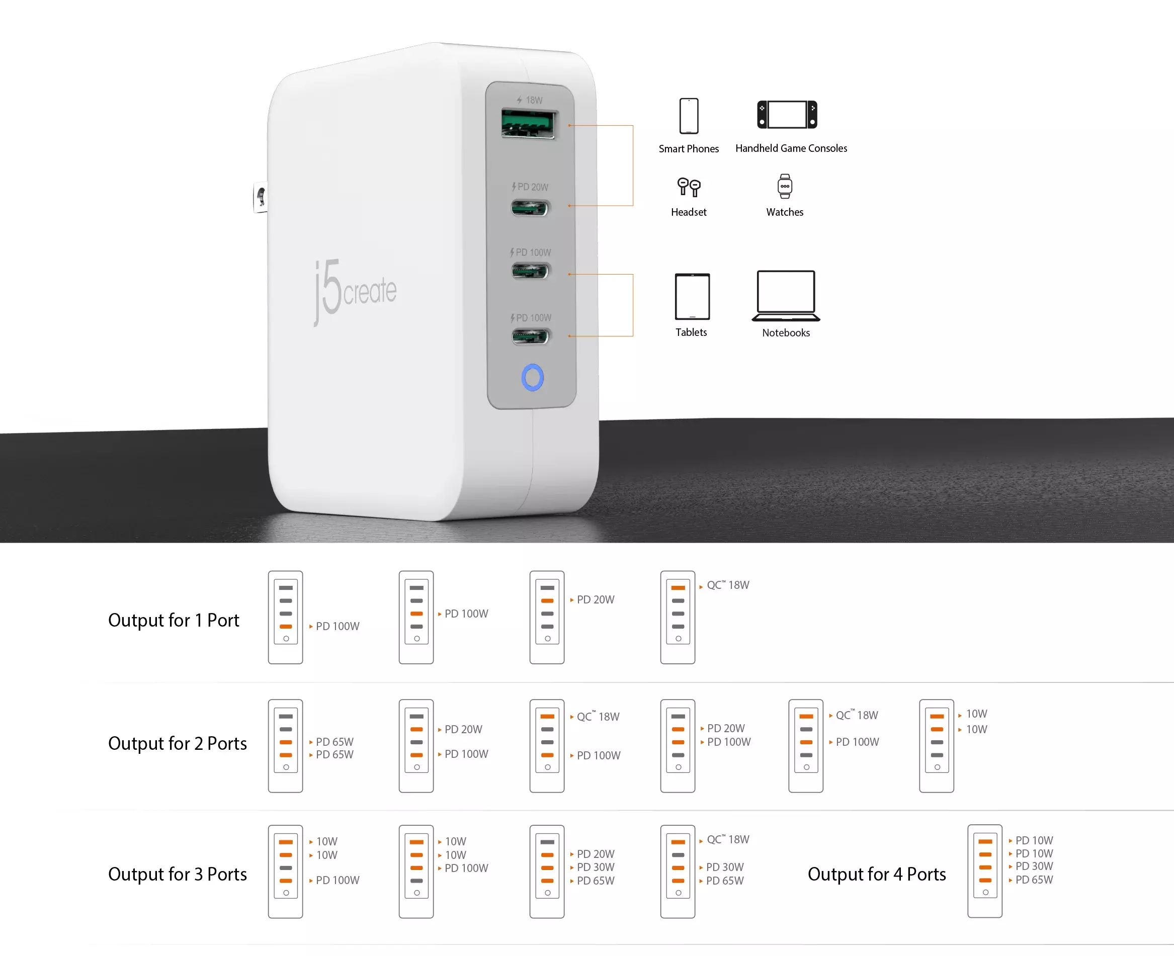 j5create 130W GaN USB-C 4-Port Charger