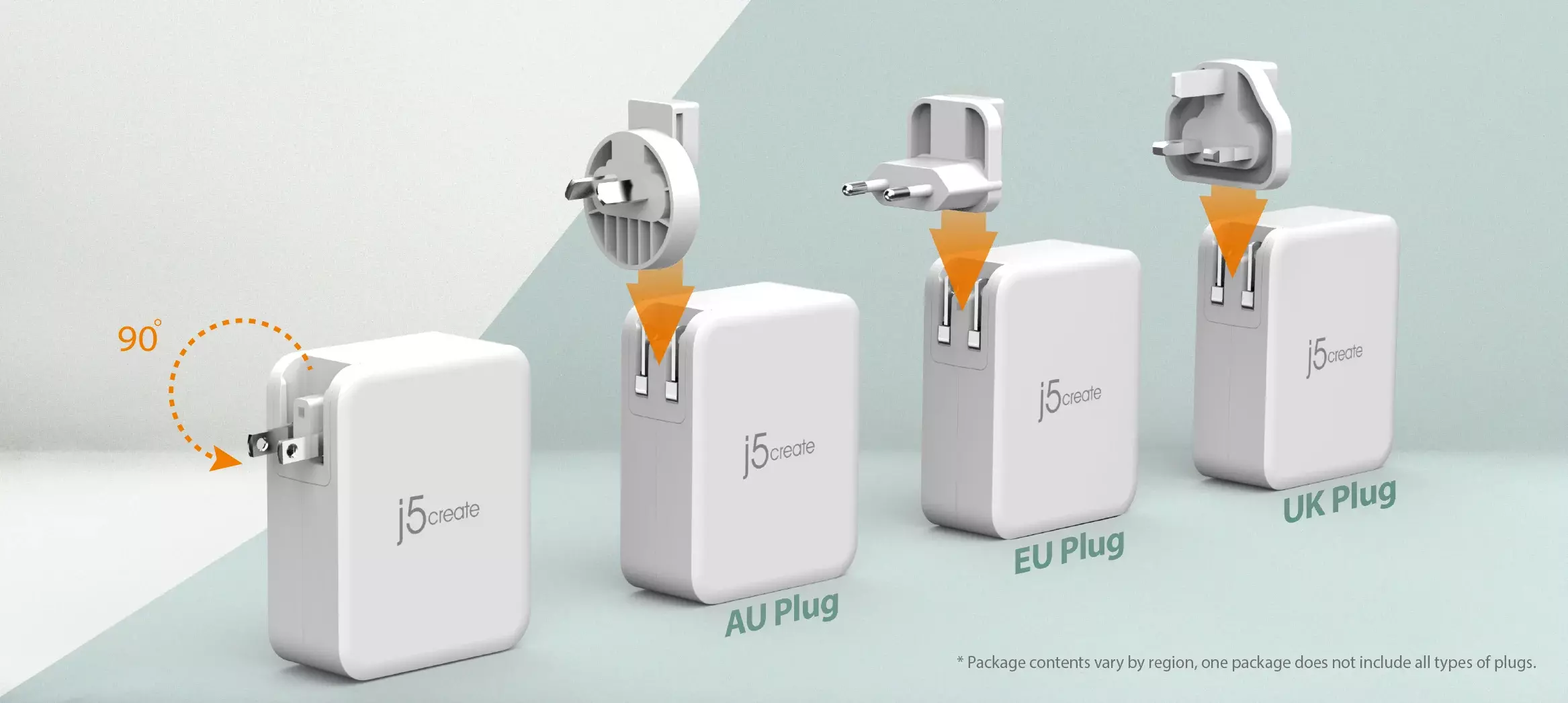 Съдържанието на пакета варира според региона, един пакет не включва всички видове щепсели