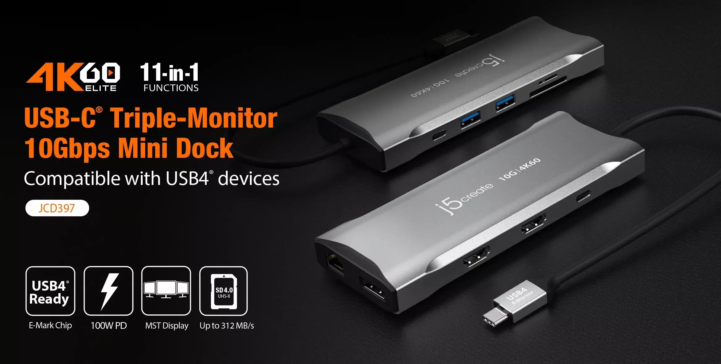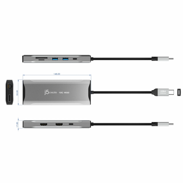 j5create 4K60 Elite USB-C Triple-Monitor 10Gbps Mini Dock