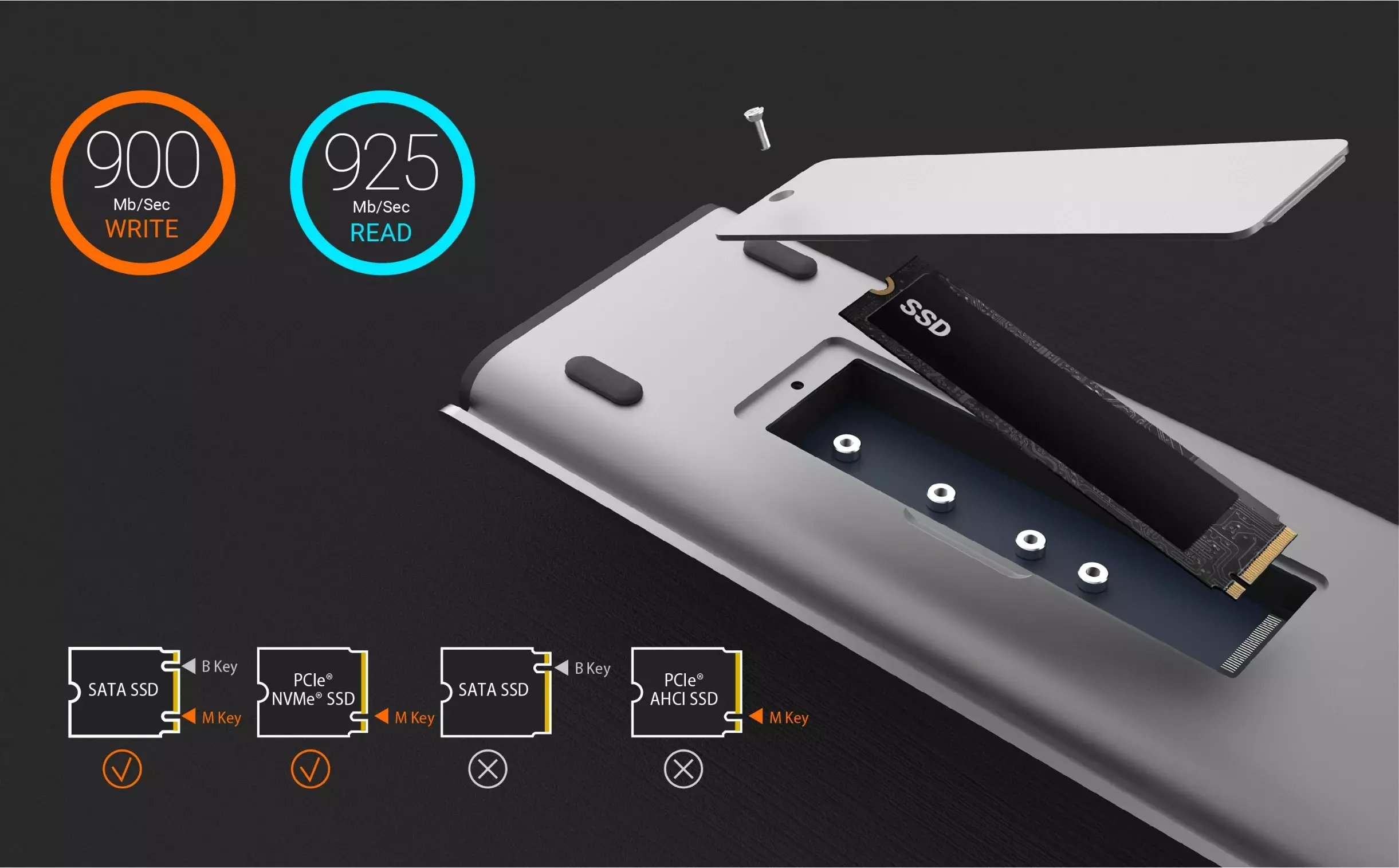 Built-in M.2 expansion SSD slot supports 2230, 2242, 2260, and 2280 M.2 NVMe SSD with ultra-fast read and write speeds