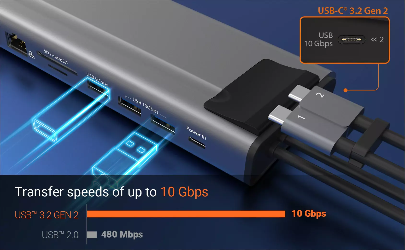 Connect your latest and legacy devices with three SuperSpeed USB 10 Gbps ports (1 USB-C and 2 USB Type-A) and a SuperSpeed USB 5 Gbps port