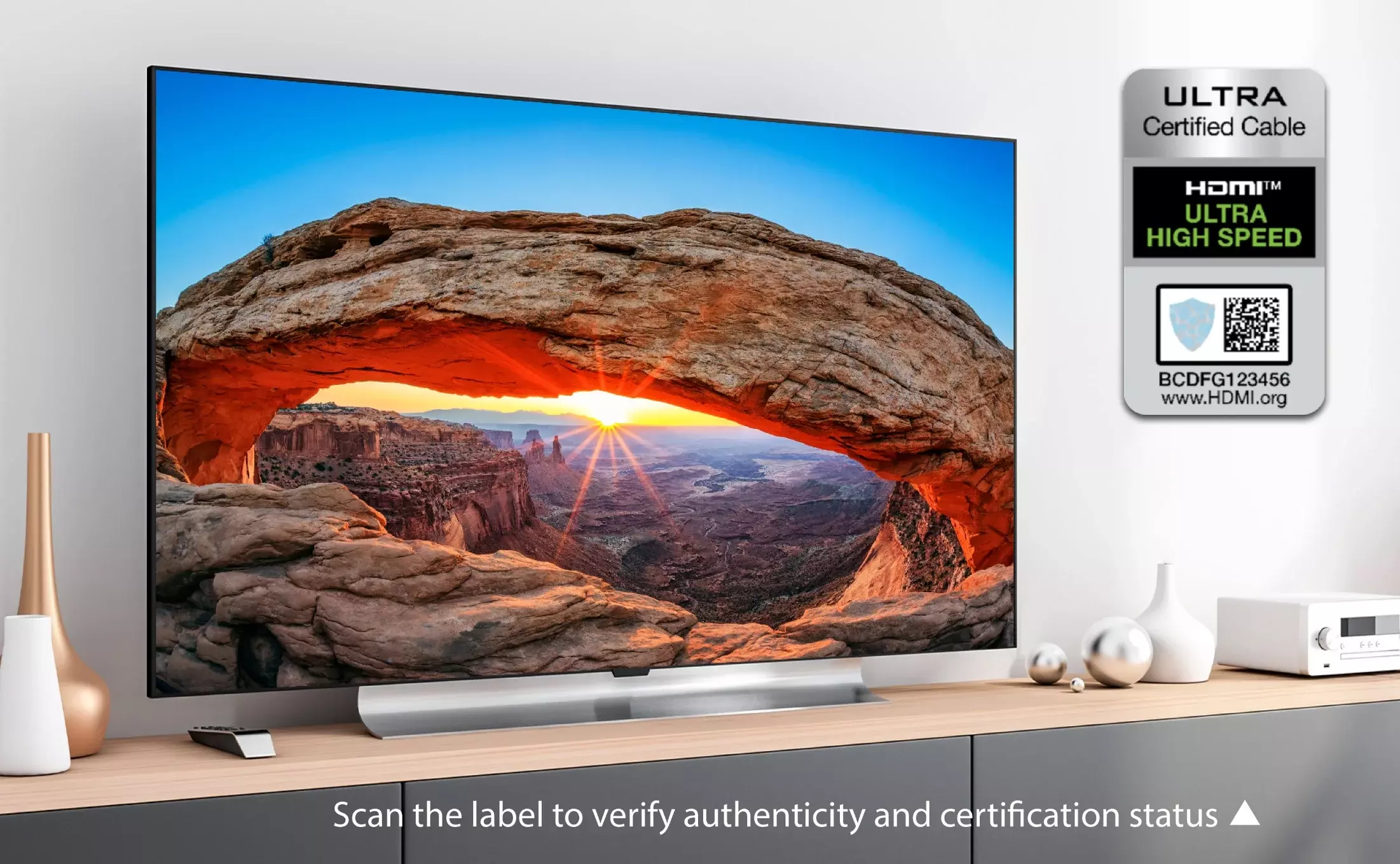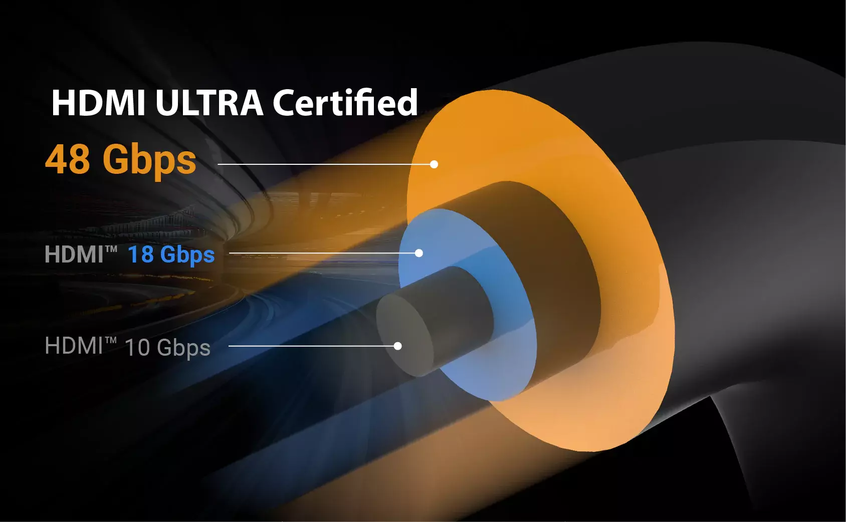- Сертифициран ултрависокоскоростен HDMI кабел