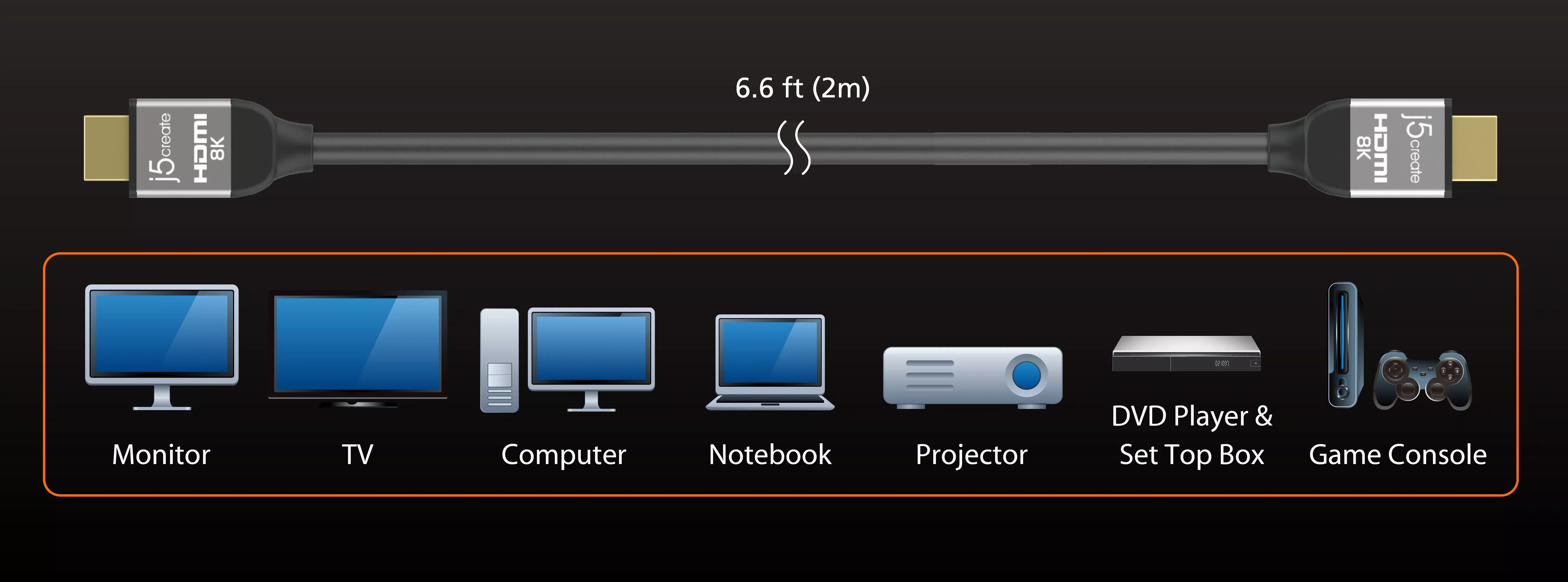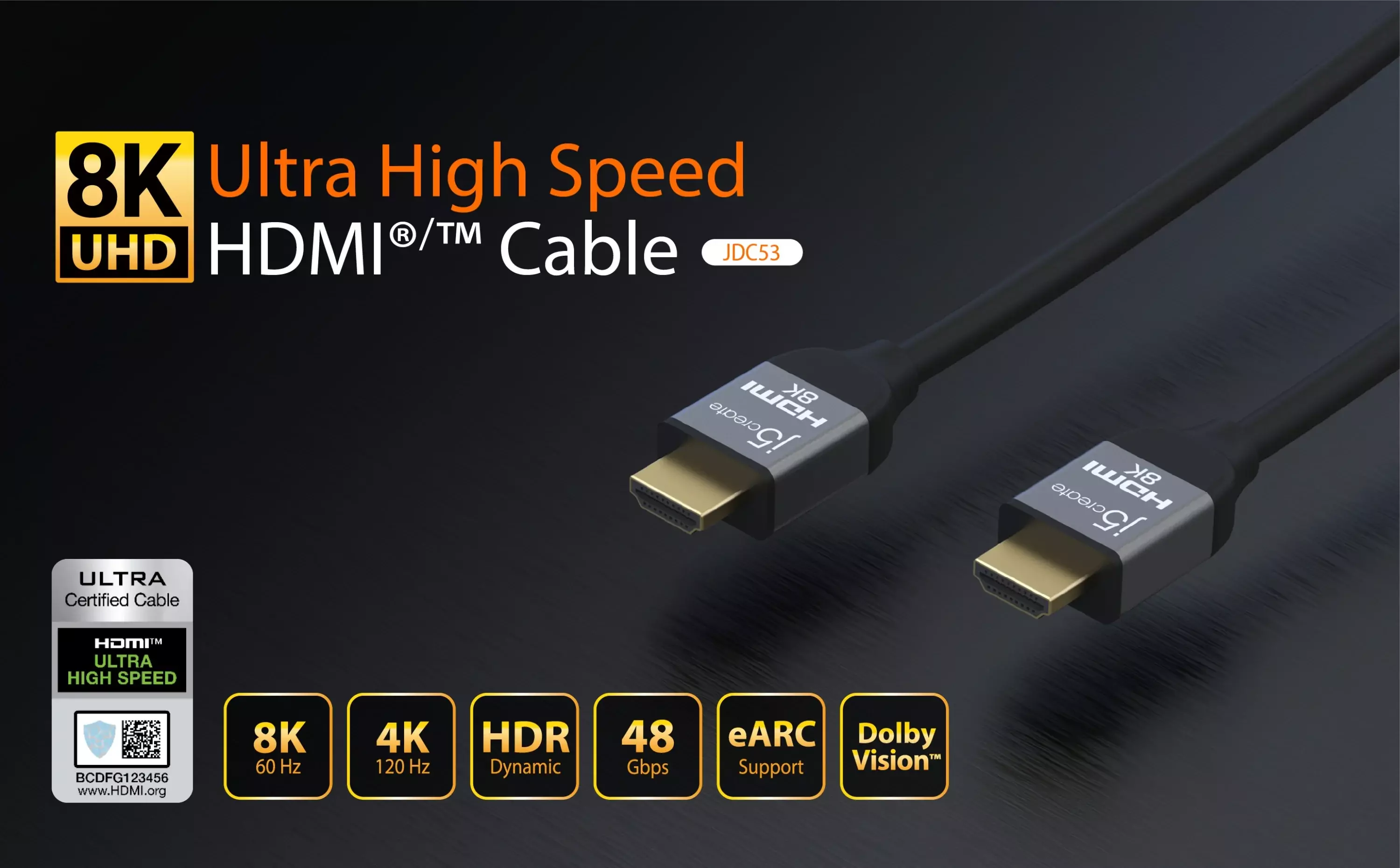 Кабел j5create JDC53, HDMI мъжко - HDMI мъжко, 8K, 48 Gbps, 2 m