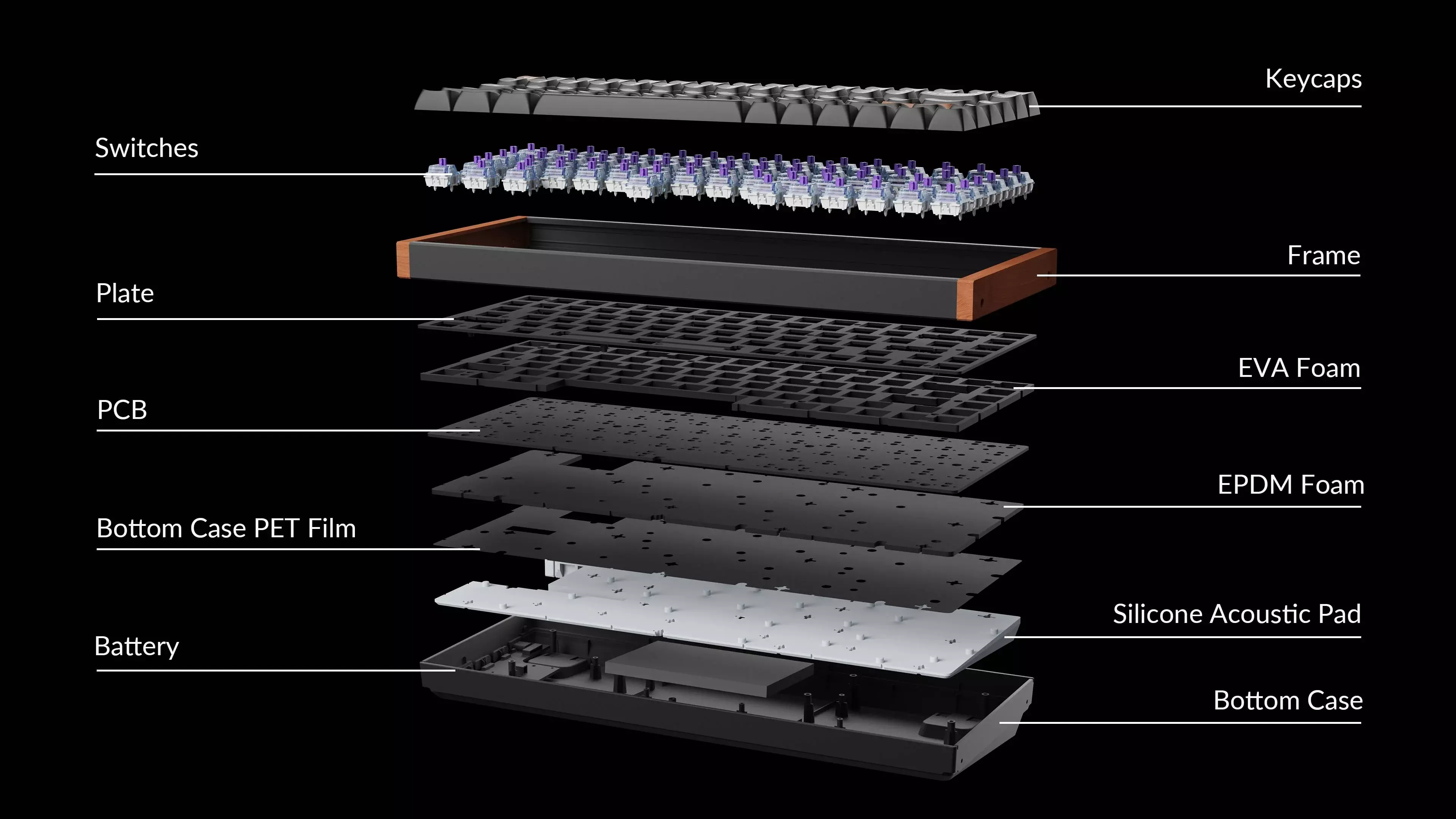 With pre-lubed switches, 3.5 mm thick EVA acoustic foam, EPDM foam, and a silicone pad inside the keyboard, the