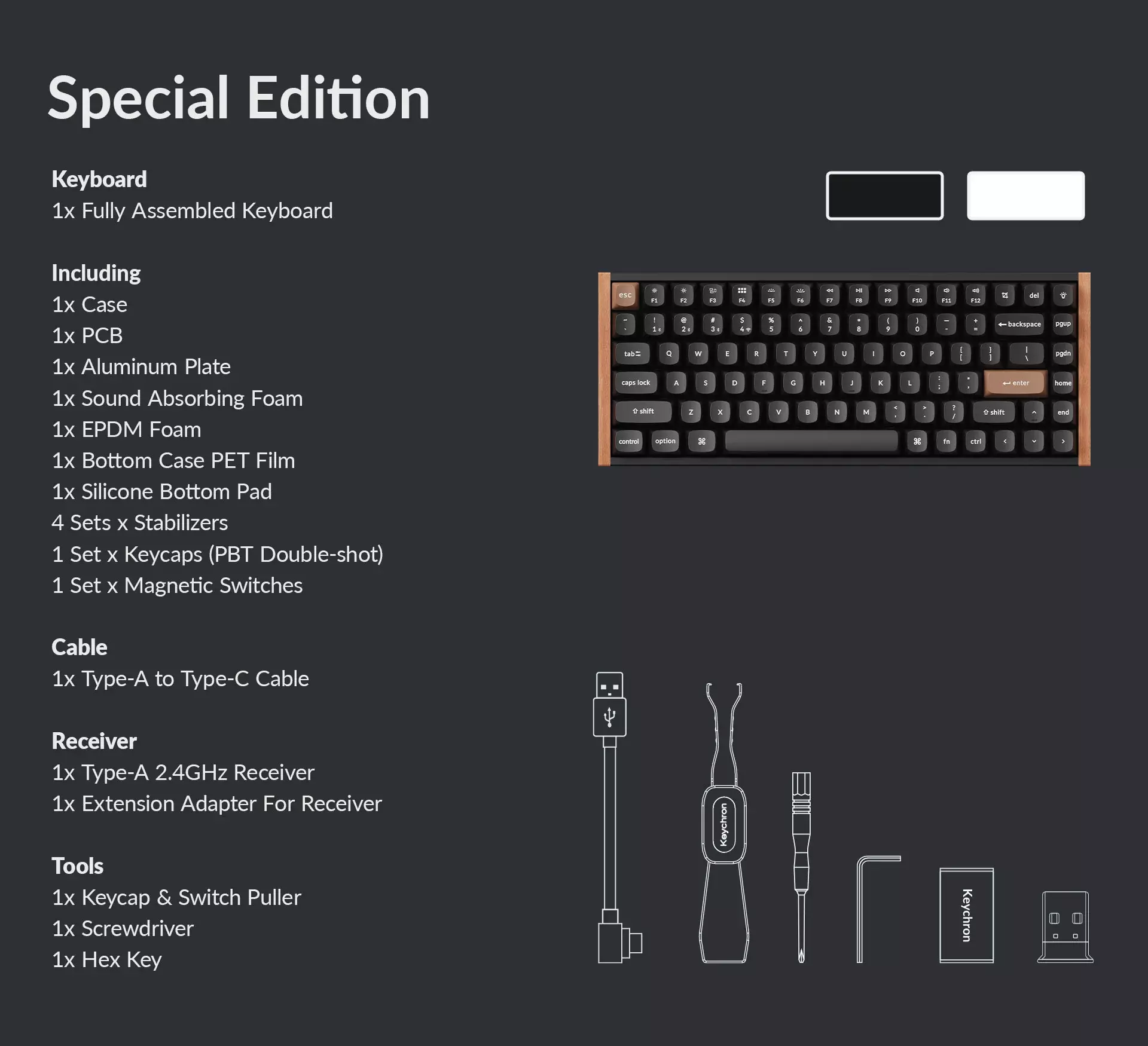 the black version. Both editions feature OSA profile double-shot PBT keycaps and aluminum with wooden frames.
