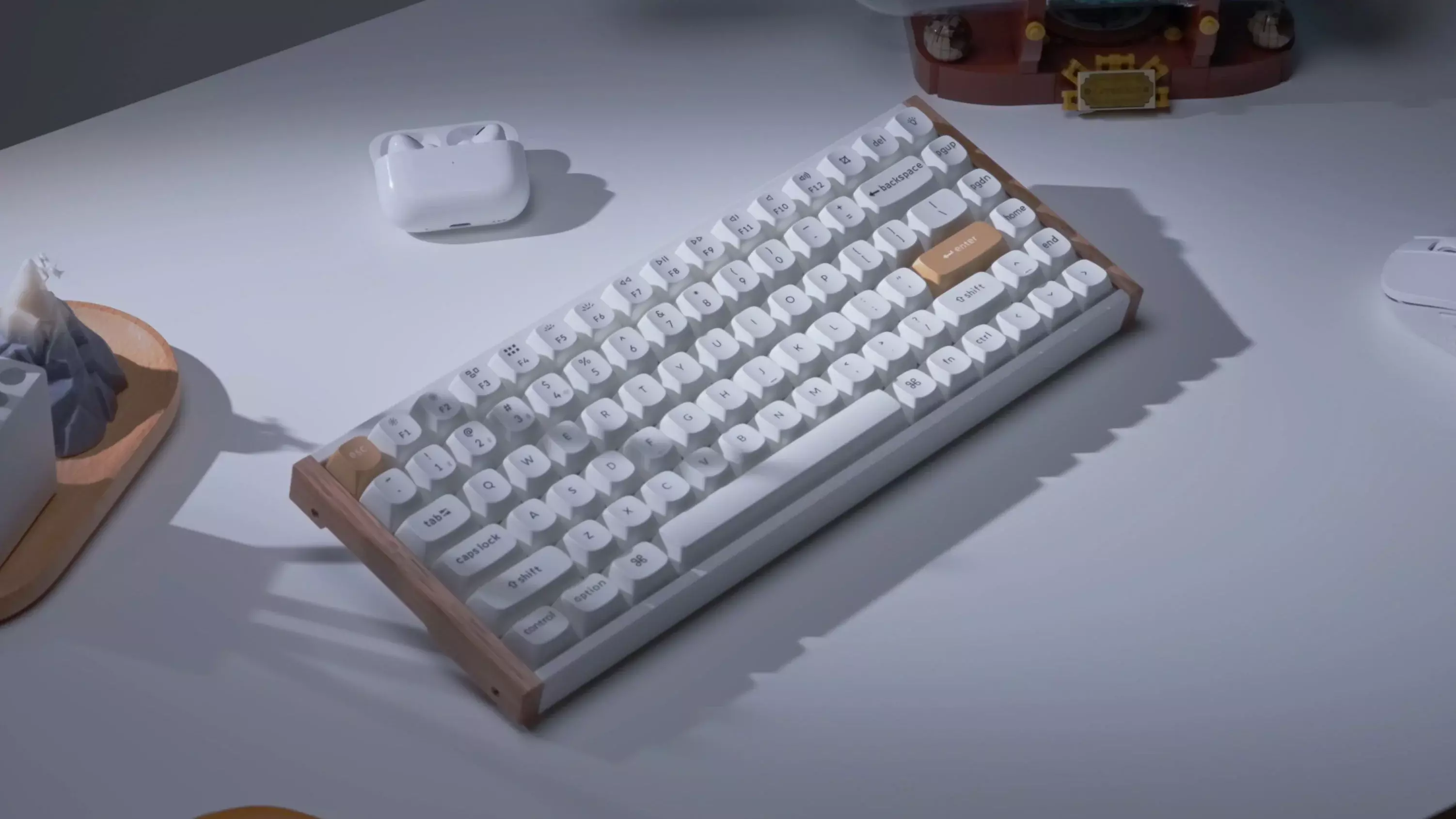 - Премиум изработка: Включва двойно инжектирани PBT капачки за клавиши, акустични материали за намаляване на шума и стилна алуминиева и дървена рамка.