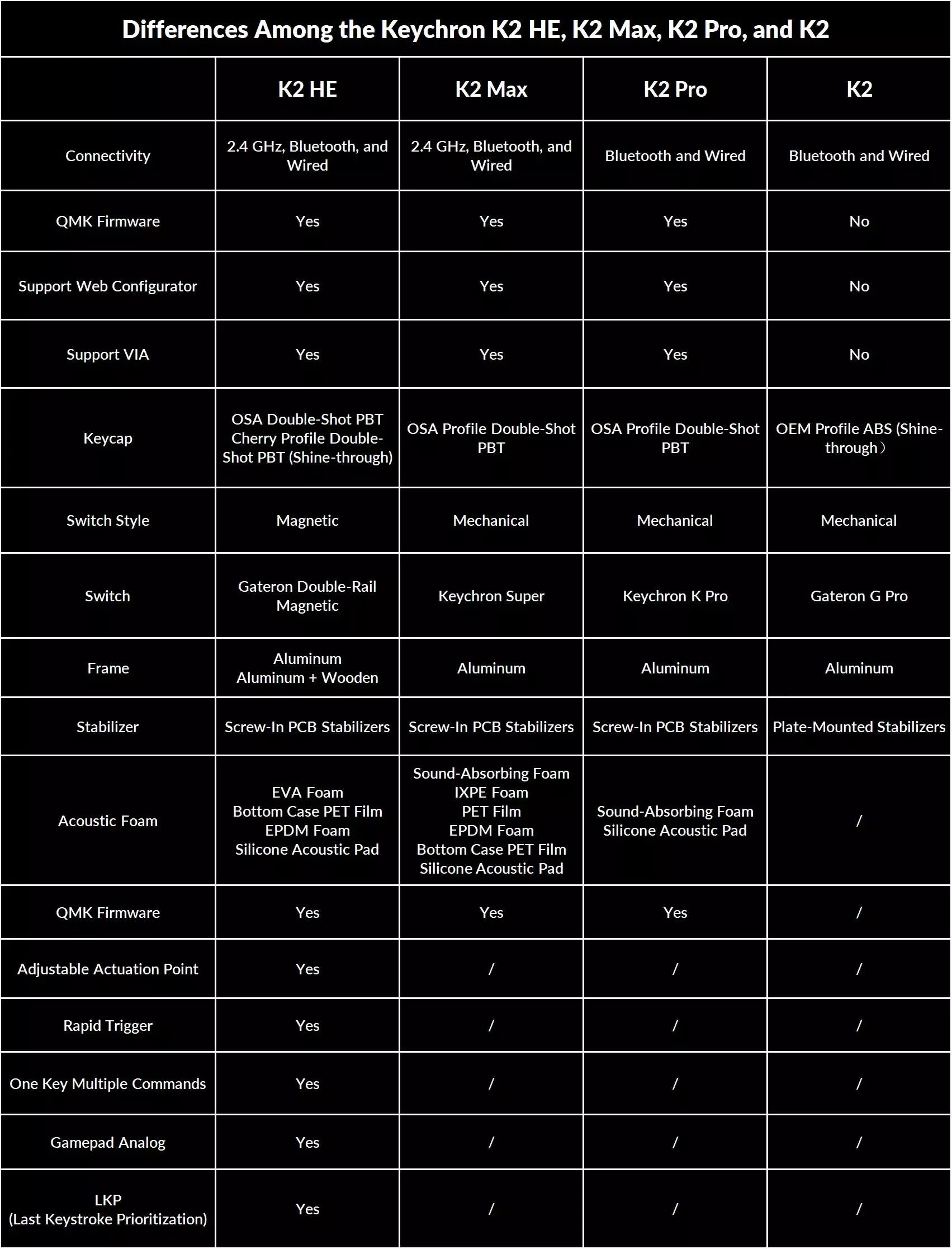 *The K2 HE is compatible with the double-rail magnetic switches sold on the Keychron website only.