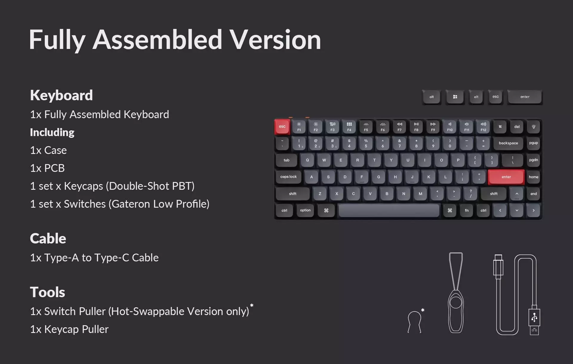 | Keycap Material | Low-profile double-shot PBT Low-profile dye-sublimated PBT (Special Edition) |