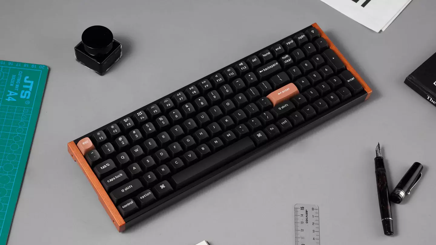 the black version. Both editions feature OSA profile double-shot PBT keycaps and aluminum with wooden frames.