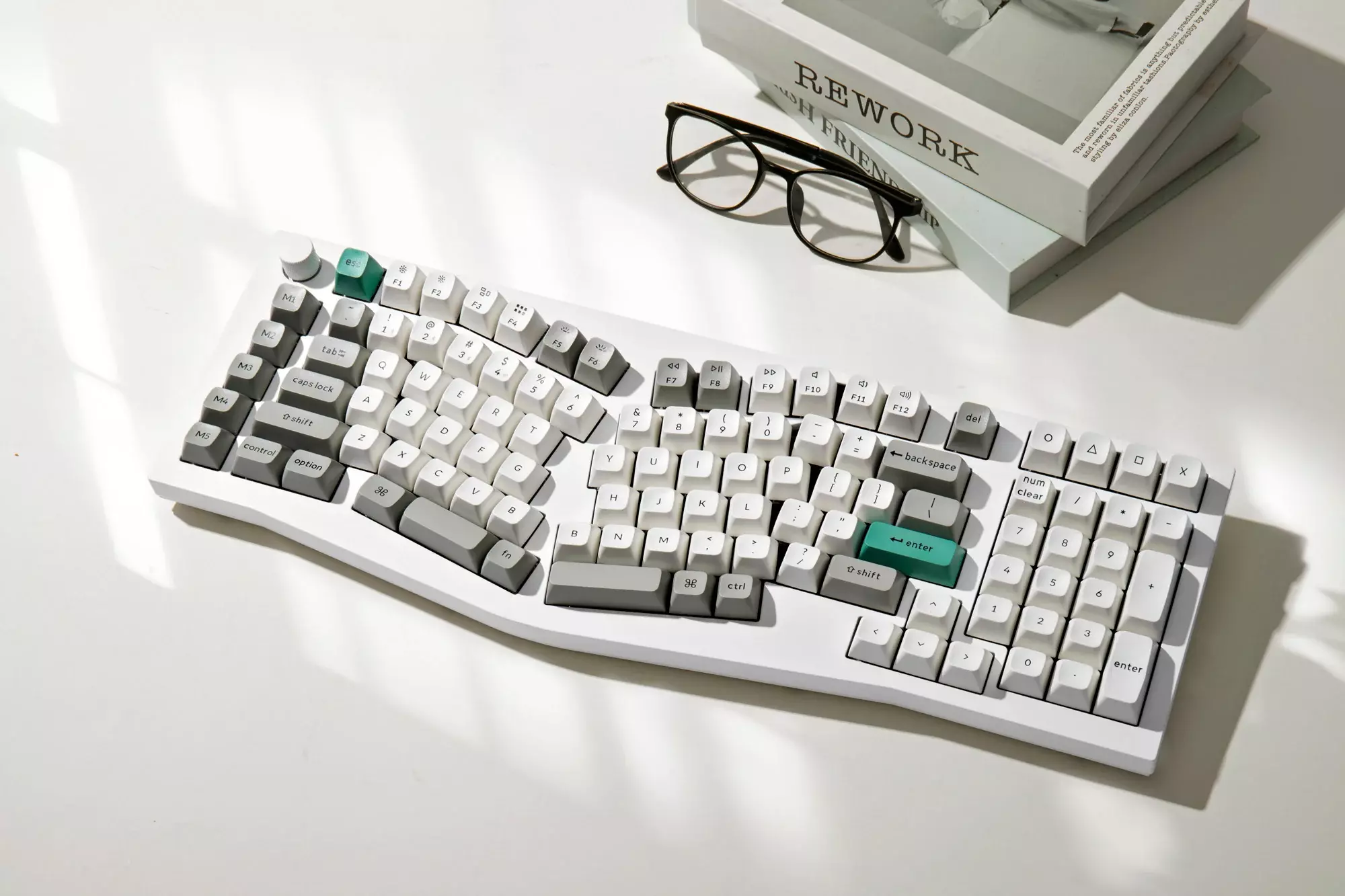 - Дизайн и оформление: Клавиатурата има 96% Alice оформление, което е разделено и наклонено за по-естествена позиция на ръцете, намалявайки напрежението при дълги сесии на писане. Изработена е от алуминий 6063, обработен чрез CNC машинна обработка, полиране и анодизация за здравина и елегантен вид.