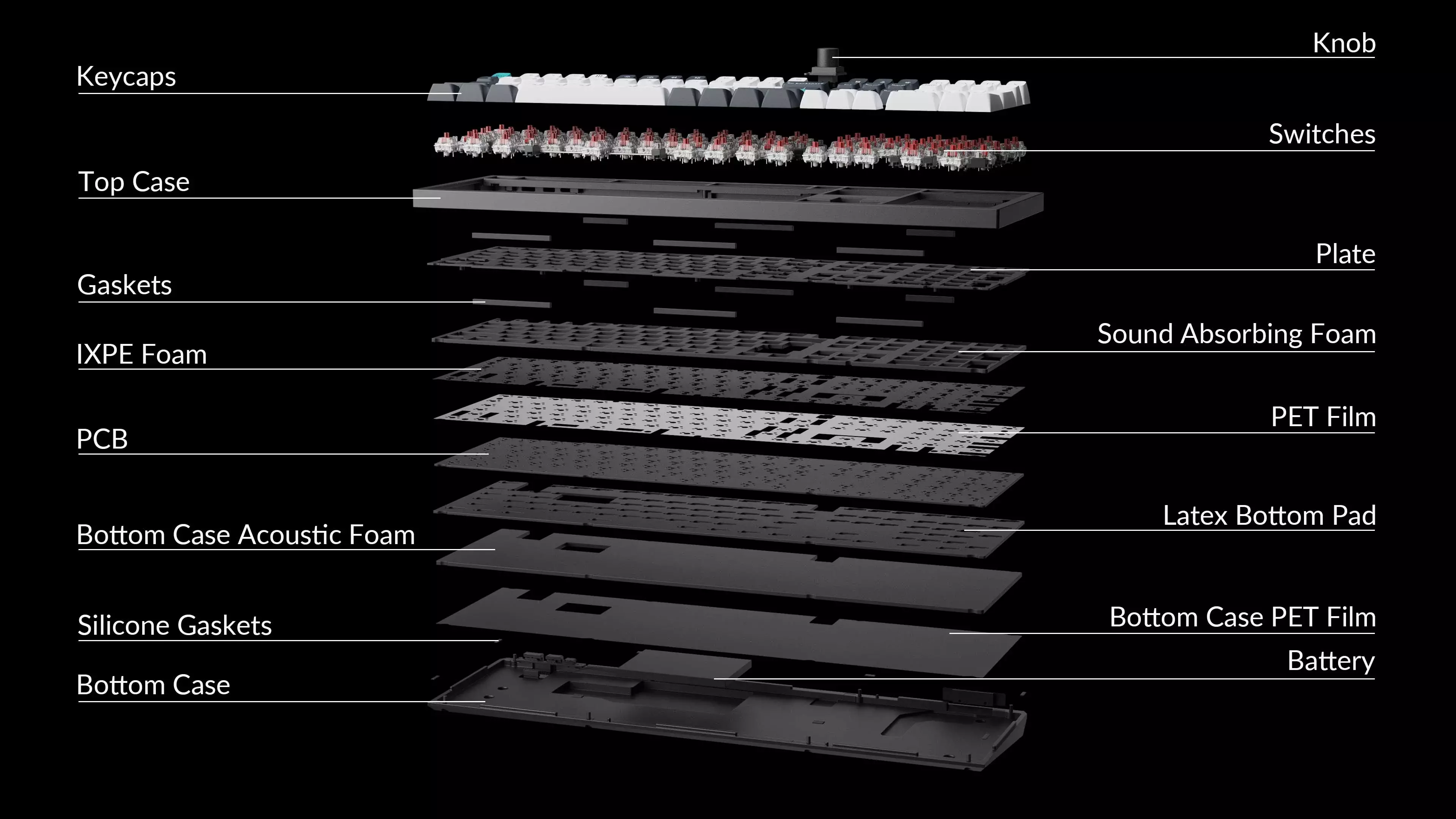 reinforced multi-layer acoustic foam and double-gasket design provides an incredibly satisfying typing experience while