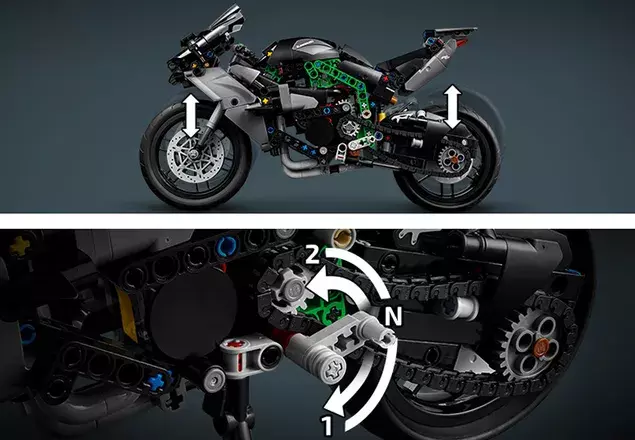 This set honors the real Kawasaki Ninja H2R, with steering,
