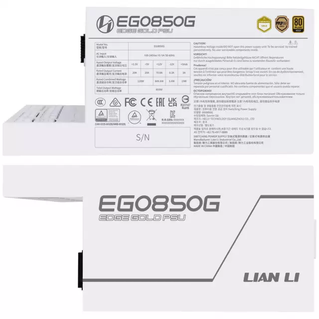 Lian Li EDGE EGO850 GOLD е висококачествен 850W модулнo захранваne с уникален L-образен дизайн, сертифициран по стандарта 80 PLUS Gold и съвместим с ATX 3.1 и PCIe 5.1.
