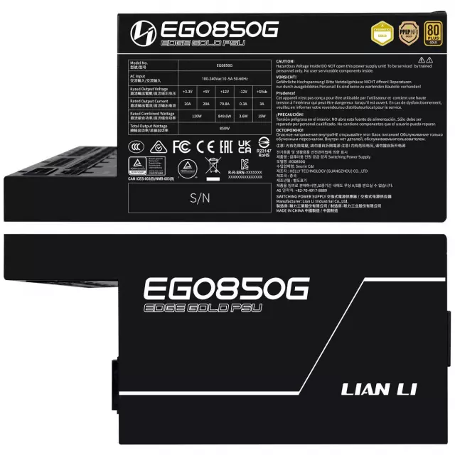 Захранване Lian Li EDGE EGO850 Black 850W 80+ Gold PCIe 5.1, ATX 3.1