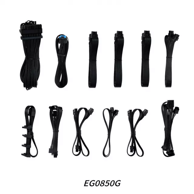 1 x 24/20-Pin motherboard connector (620mm) x1pcs 1 x 8 pin CPU/ATX 12V connector (750mm) x1pcs 1 x 4+4 Pin CPU connector (750mm) x1pcs 1 x 6+2 Pin GPU connector (650mm+100mm) x1pcs 1 x SATA connector (300mm-15mm-15mm-15mm) x1pcs 1 x SATA-Y connector (375mm-150mm-150mm) x 1pcs 1 x SATA connector (400mm-150mm-150mm-150mm) x1pcs 4 x 4-Pin Peripheral connector (500mm-150mm-150mm-150mm) x1pcs 1 x 12V – 2X6 450W connector (650mm) x1pcs 2 x 6+2 Pin GPU connector (650mm) x2pcs |