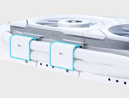 Fixed brackets on the radiator ensure the coolant tubes stay securely in place, with an additional bracket included for cases with limited top-mount space.